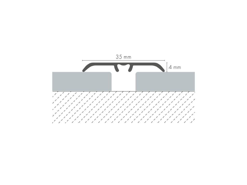 Cezar - elox Striebro C0, šírka 35mm, dĺžka 0,93m, profil AL prechodový samolepiaco-narážací plochý ovál