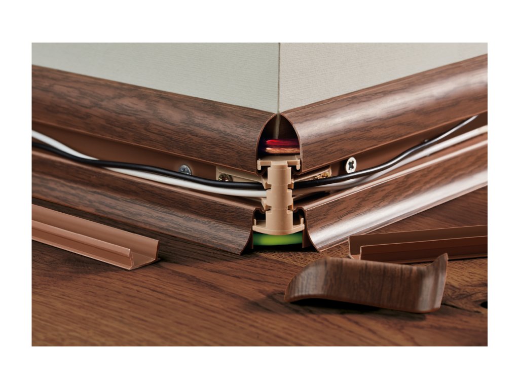 Vnútorný priestor lišty umožňuje viesť niekoľko káblov naraz – bez chaosu popri stenách. Integrované gumové tesnenie prepojí stenu s lištou a dotvorí uprataný vzhľad interiéru.