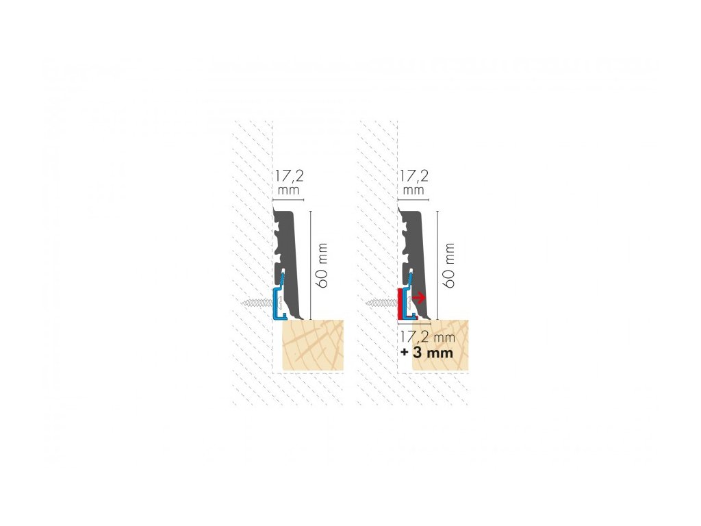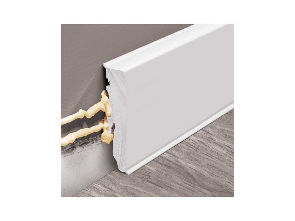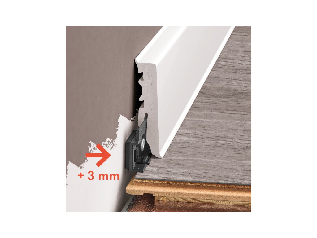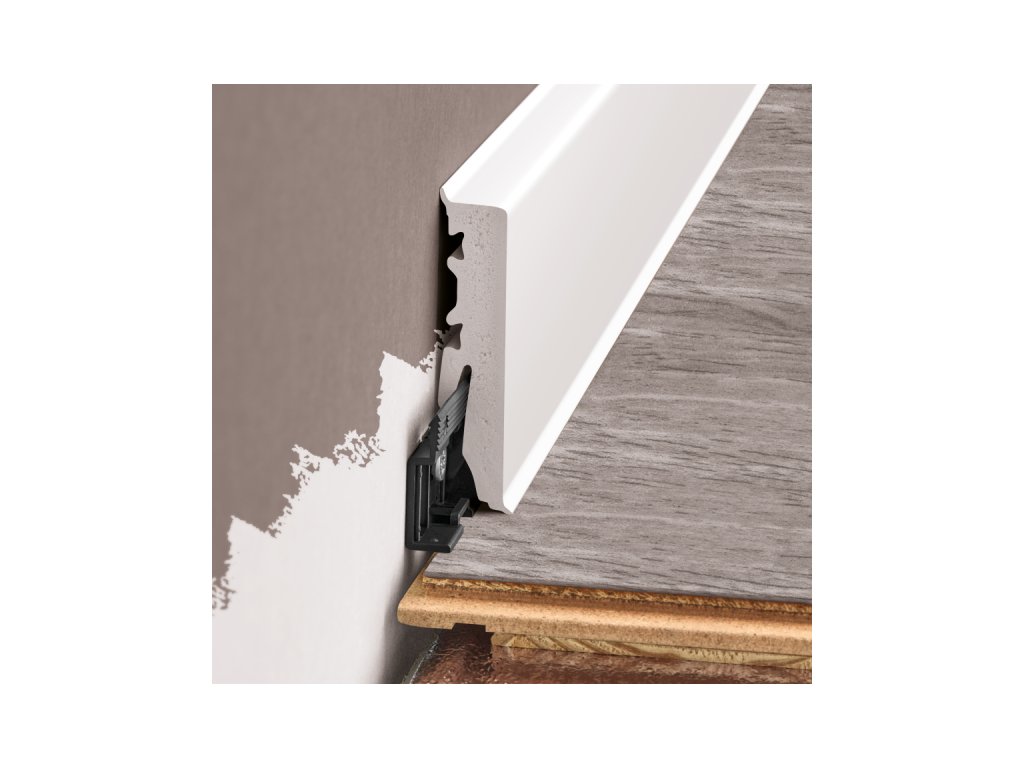 Soklové lišty Cezar MASTERLINE 60 dokonale ladia k laminátovým, vinylovým aj kompozitným podlahám. Sú vodeodolné a vďaka integrovanému gumovému tesneniu výborne priľnú k stene. Montáž je jednoduchá – pomocou montážnych úchytov alebo lepením.
